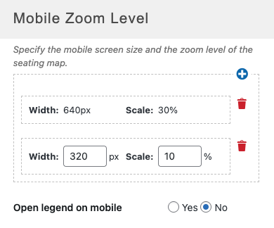 By default, seating charts in Tickera use a predefined zoom behavior on mobile devices. In most cases this works well, but depending on the seating layout, density, and screen size, you may want more control over how the chart is displayed when viewed on smaller screens.
