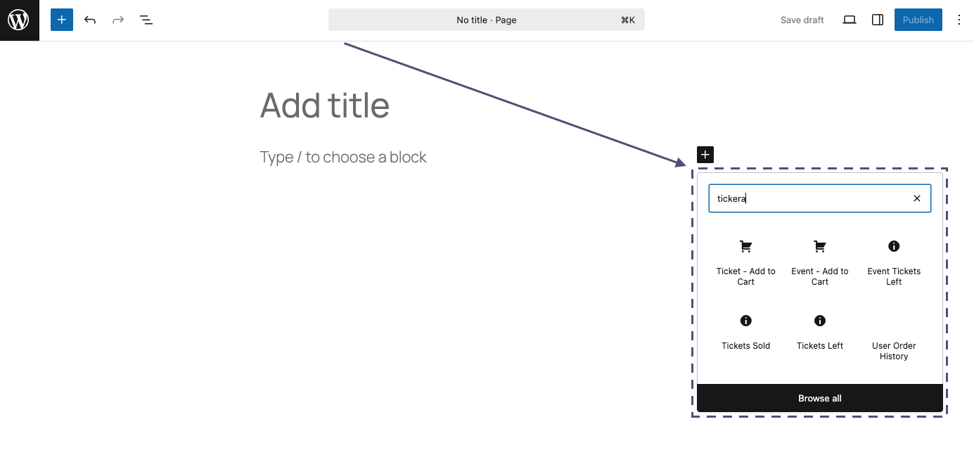 If you’re using the classic editor, you’ll be working with shortcodes. If you’re using Gutenberg, you can use Tickera blocks instead - both display identical information, and it’s entirely up to your preference which you choose. Shortcodes can also be used with third-party page builders, such as Elementor, WPBakery, or Divi, just like any other WordPress shortcode.