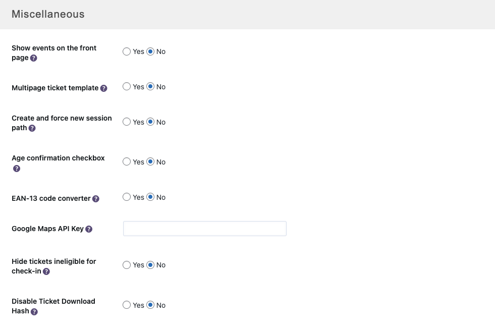 These options do not interact with WooCommerce. They control how Tickera behaves on the site and in ticket generation.