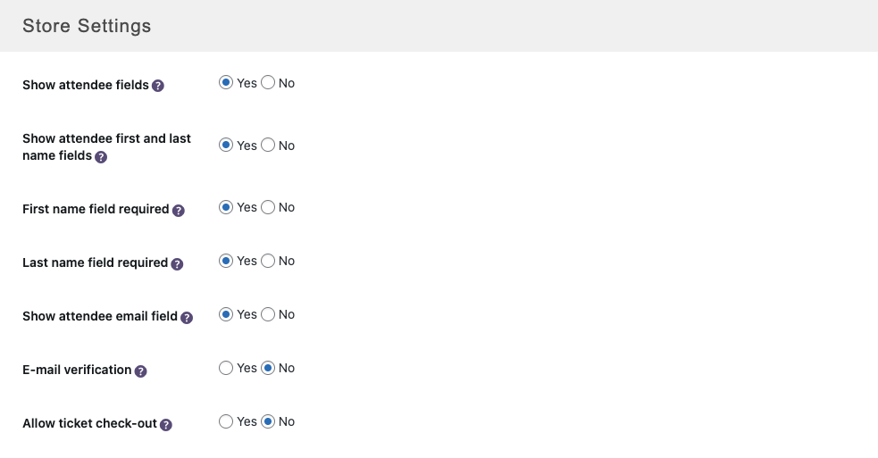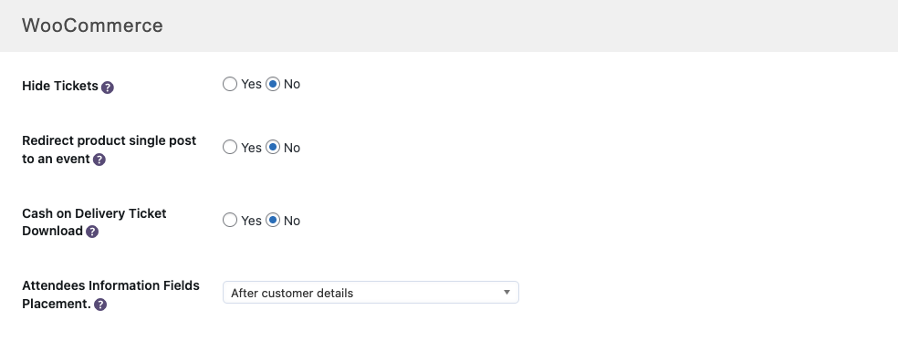 Even though WooCommerce manages checkout, these switches govern how Tickera collects attendee information. Attendee information is not part of WooCommerce's default checkout but can be collected by enabling them in these settings. Also, attendee email field can be used if you want to deliver tickets via email directly to attendees, not just to buyers.